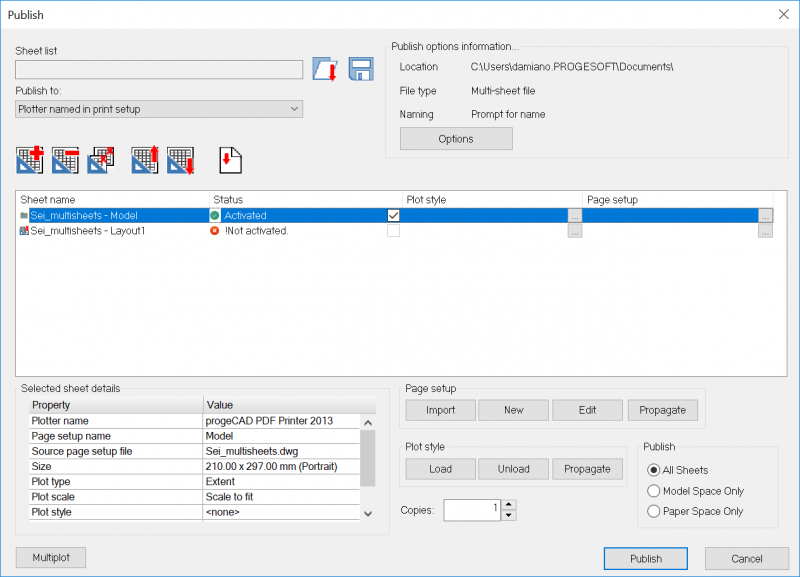 Layouts taken from one or more drawings can be printed or exported to PDF or DWF using the print settings of individual layouts. Speed up the print process when necessary to print or export several different drawings or drawings with several different layouts.