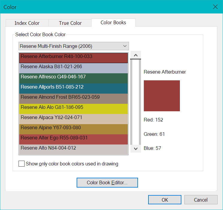 With progeCAD, the RGB values of the Color Books Colors that are assigned to objects are preserved in all current and legacy drawing files