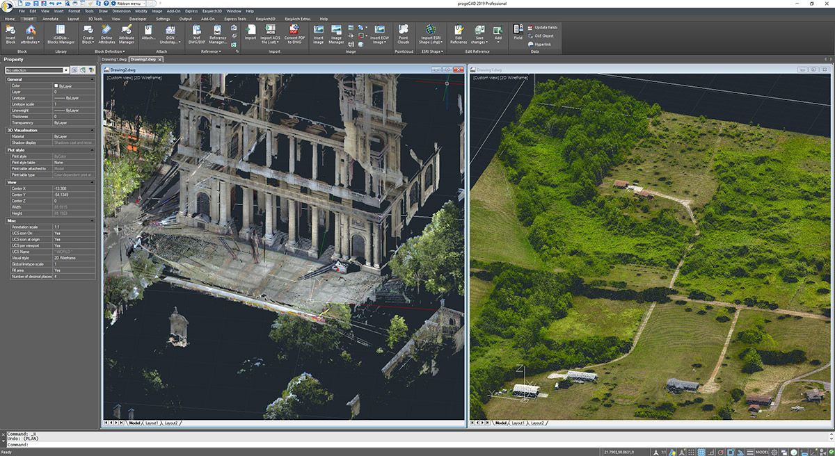 Along with the standard ReCap® .rcp/.rcs file formats, with progeCAD you can import Point Cloud formats such as PCG, ISD, XYZ, PLY and LAS