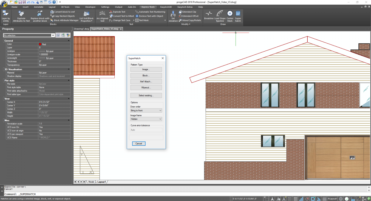 Superhatch is an express tool function that lets you quickly hatch with your own pattern, no programming or creation of pat files needed. progeCAD's hatch with image capability is a part of the Superhatch function.