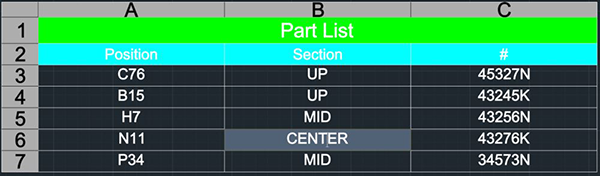 progeCAD Tables support AutoCAD® like Text in-place editing, numeric Rows and alphabetical Columns.