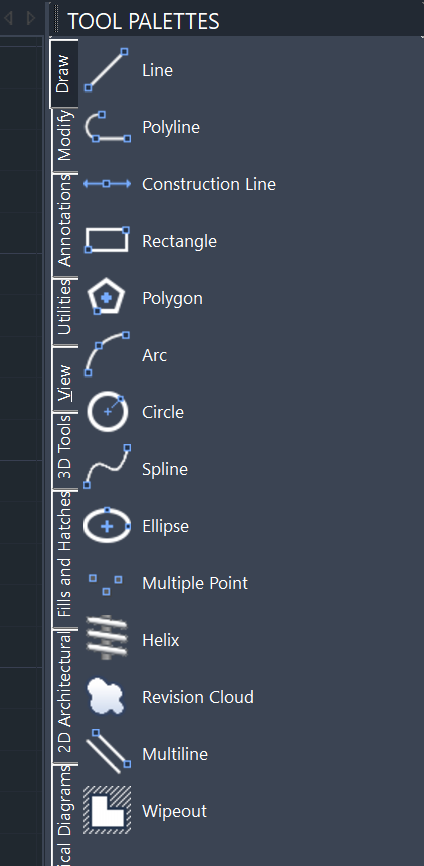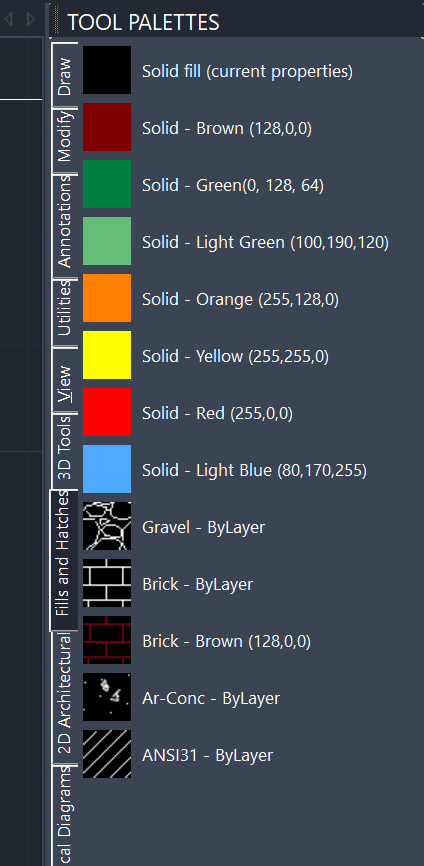 Use the tool palettes to organize blocks, hatches, and custom tools in a tabbed window. Easily customizable by Drag & Drop. Options and settings are accessible from shortcut menus.