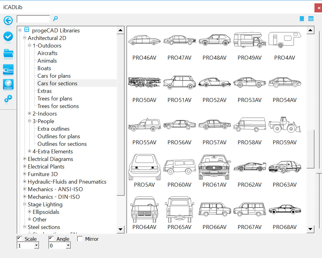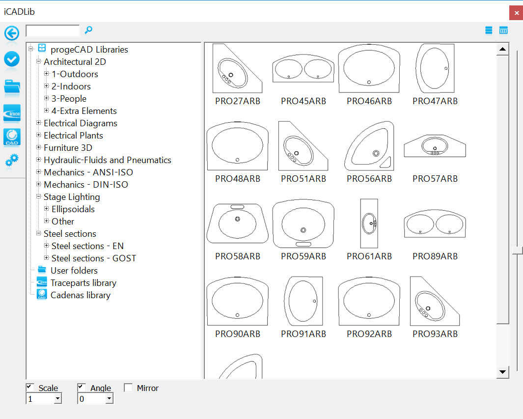 The advanced iCADLib module for blocks management ensures the best organization and management of your Symbol Libraries. More than 22.000 ready-to-use 2D/3D Blocks: Construction, Architectural, ANSI-ISO and DIN-ISO Mechanics, ANSI and IEC Electrical, Electronic, Steel Profiles, Furniture, Kitchen.