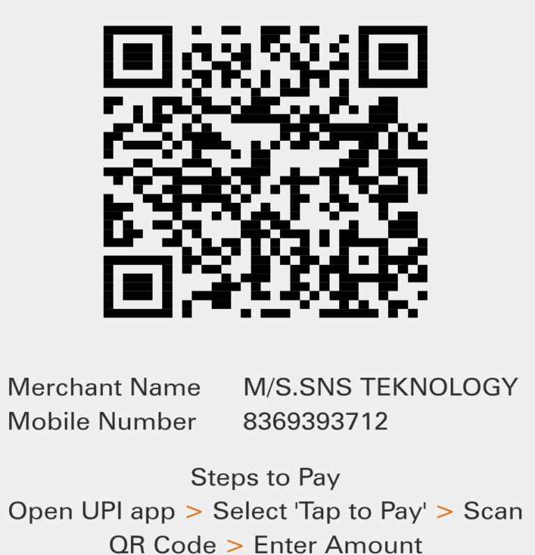 NAME: SNS TEKNOLOGY BANK: ICICI BANK, VASHI, SECTOR 17 ACCOUNT NO: 188105000362 IFSC CODE: ICIC0001881 GSTIN: 27AAPPU3375H1Z2